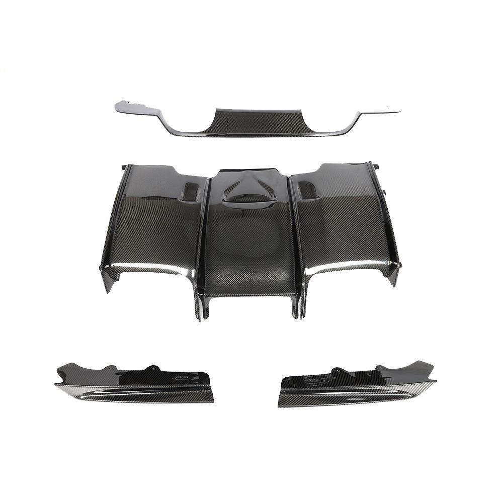 Constructed from high-quality carbon fiber, this rear diffuser offers lightweight durability, precise weave alignment, and a deep gloss clear coat finish—making it the perfect upgrade for performance builds and carbon-focused exterior packages.